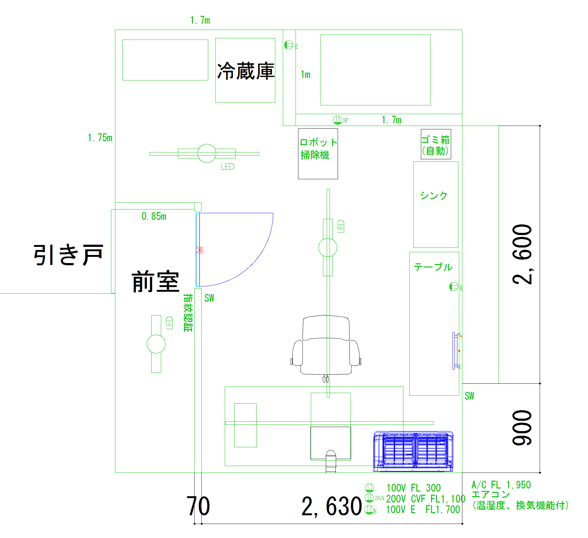 ※前室に面したドアからのみ入室可能で、窓はございません。外部と接しているのはドア以外では全熱交換形換気機器、空調機、焙煎機用排気ダクトのみです。それぞれメッシュ及びフィルターが取り付けられています。